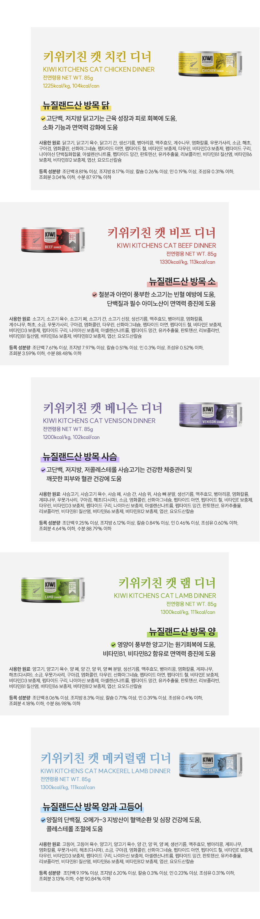 키위키친 캣 캔 고양이 주식캔 85gX5개 혼합SET 11,900원 / 배송비 : 3,000원 주문시결제(선결제)
