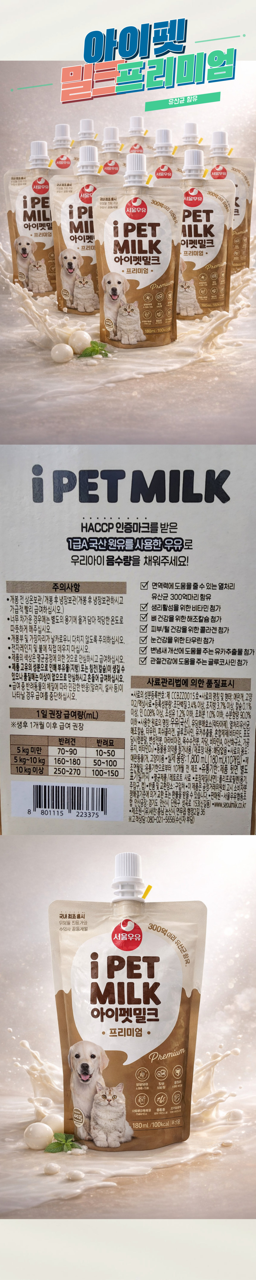 서울우유 아이펫밀크 프리미엄 180ml X 10개 22,500원 / 배송비 : 3,000원 주문시결제(선결제)